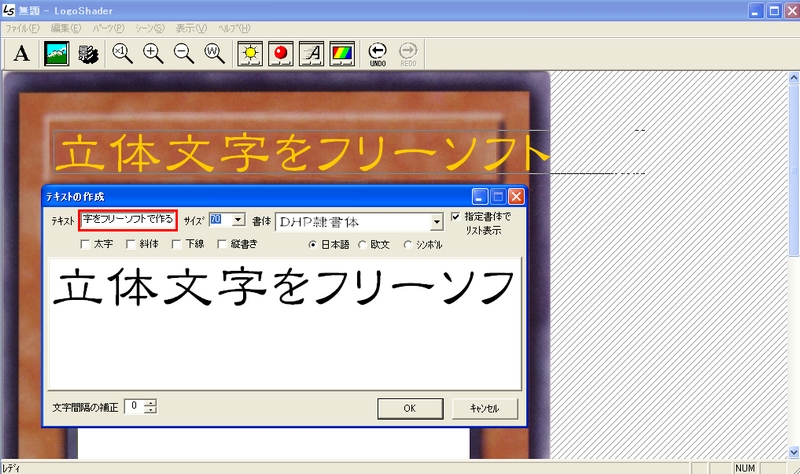 次に文字を打ち込み「立体文字を作る」でやったように立体に加工します。