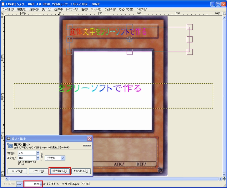 お疲れ様でした。これで長い文字も遊戯王風にフォント間を詰めずに文字全体が細くなりました。