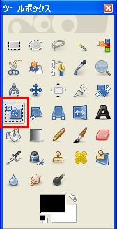 ツールボックスのレイヤーの拡大縮小を行うツール選択しましょう。(下図)