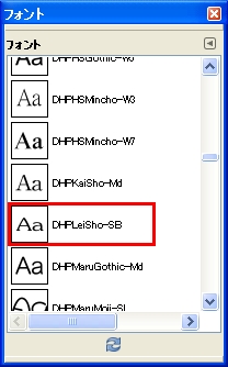 赤い枠で囲ってある部分をクリックしてフォントを自分の使用したいフォントに指定します。管理人はDF隷書に指定しました。