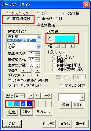 そして、リモコンを上図のように設定して、更新を押すとこのような模様ができました。